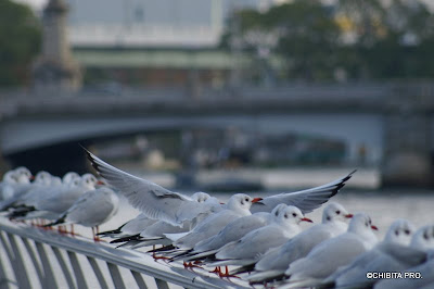 中之島のバラ公園に集まってくるユリカモメの数が増えてきた。